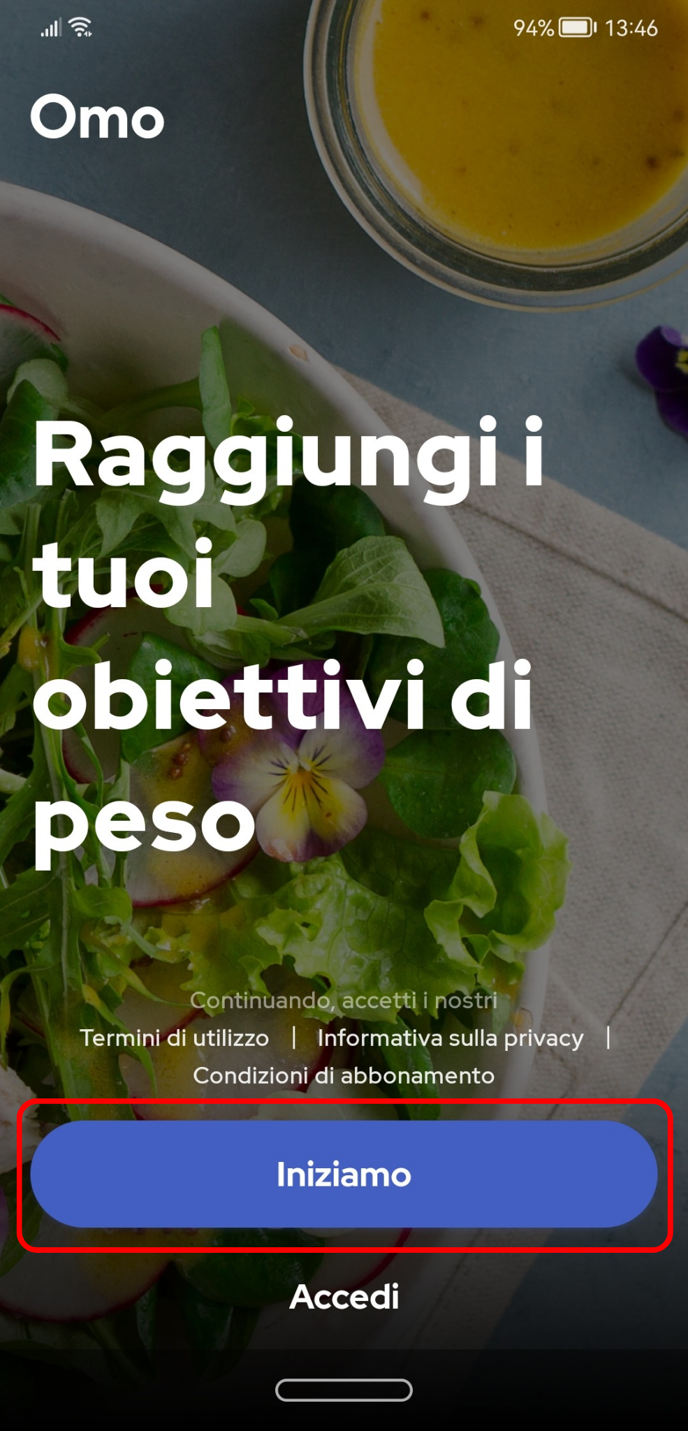 3. Tocca il pulsante “Iniziamo”, come mostrato qui sotto: